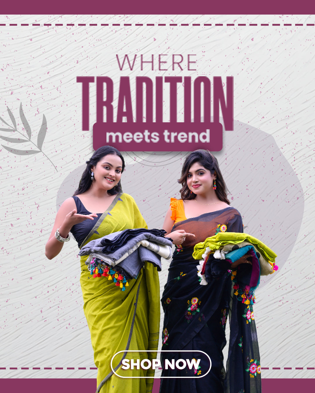 Classic Maroon Khadi Cotton Saree with Silver Check Pattern & Matching Blouse Piece