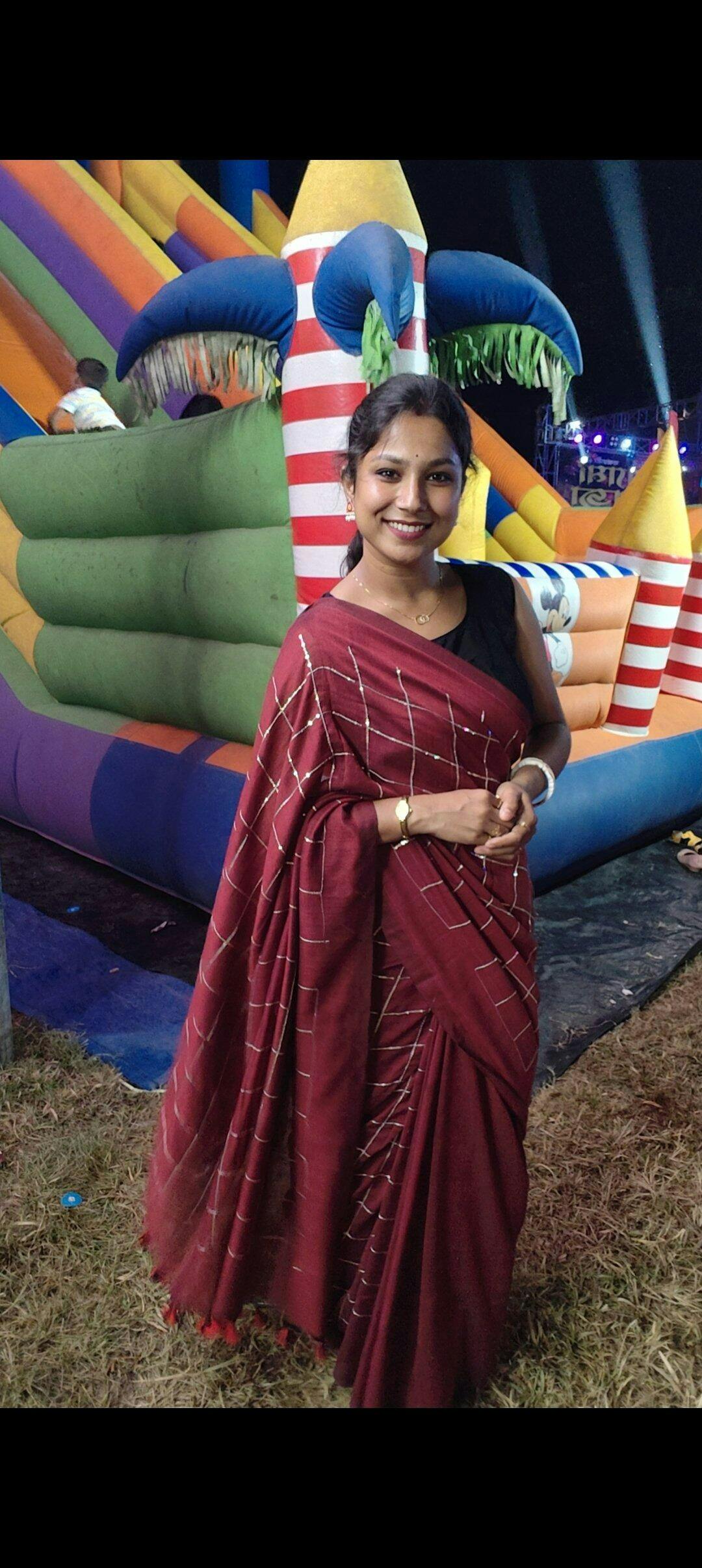 Look timeless and graceful in this maroon Khadi cotton saree, designed with an elegant silver checkered pattern for a modern yet traditional touch. Made from premium-quality Khadi cotton, this saree offers softness, durability, and breathable comfort, perfect for all-day wear. It comes with a matching blouse piece, making it a complete and versatile outfit for various occasions. Ideal for office wear, festive gatherings, and traditional functions, this saree is a perfect blend of style and simplicity.