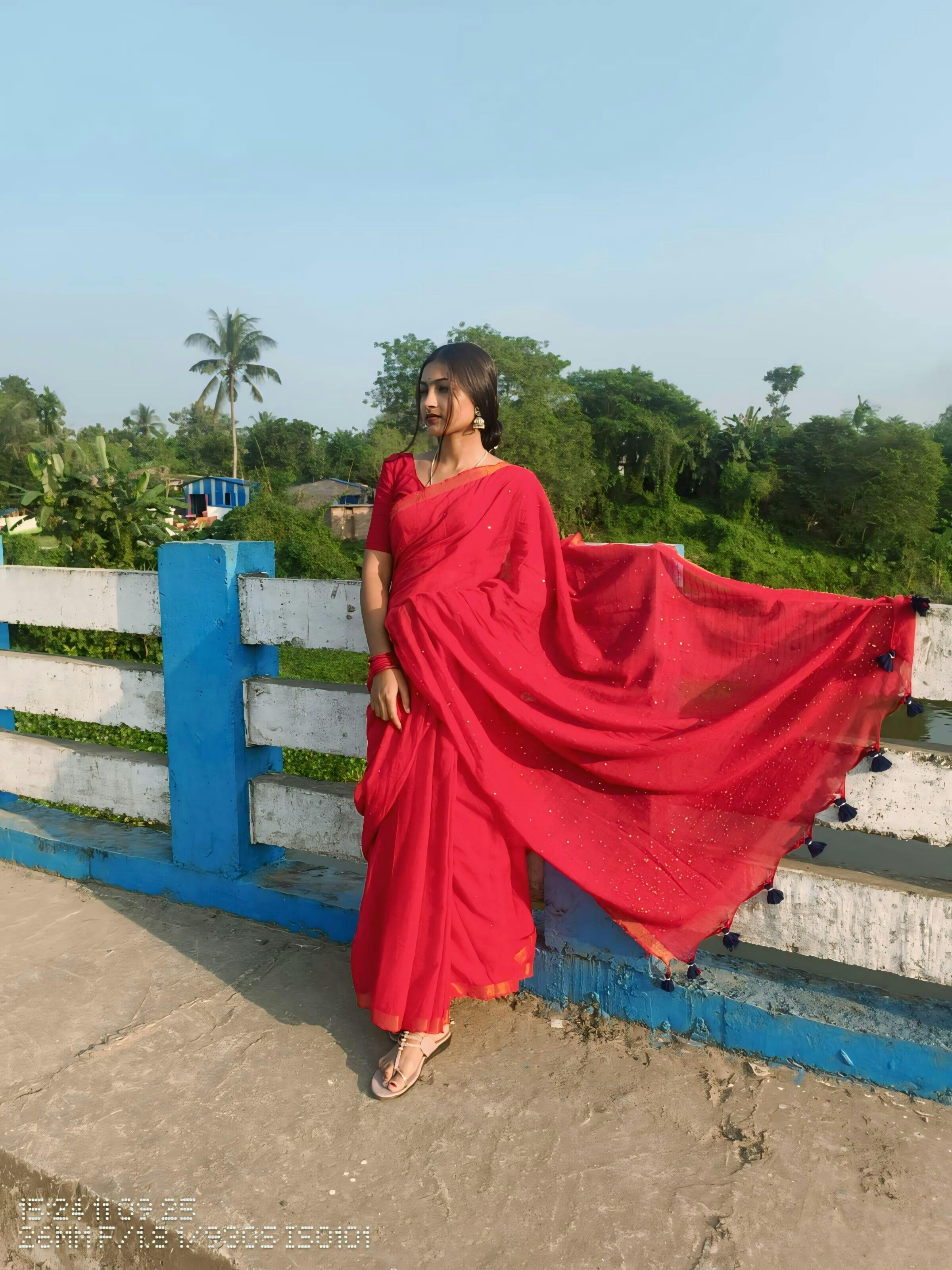 Make a bold style statement with this classic red mull cotton saree, designed for elegance and comfort. The soft, breathable mull cotton fabric drapes beautifully, giving you a graceful and effortless look. Perfect for festive gatherings, special occasions, or casual outings, this saree comes with a matching blouse piece, allowing you to style it your way.