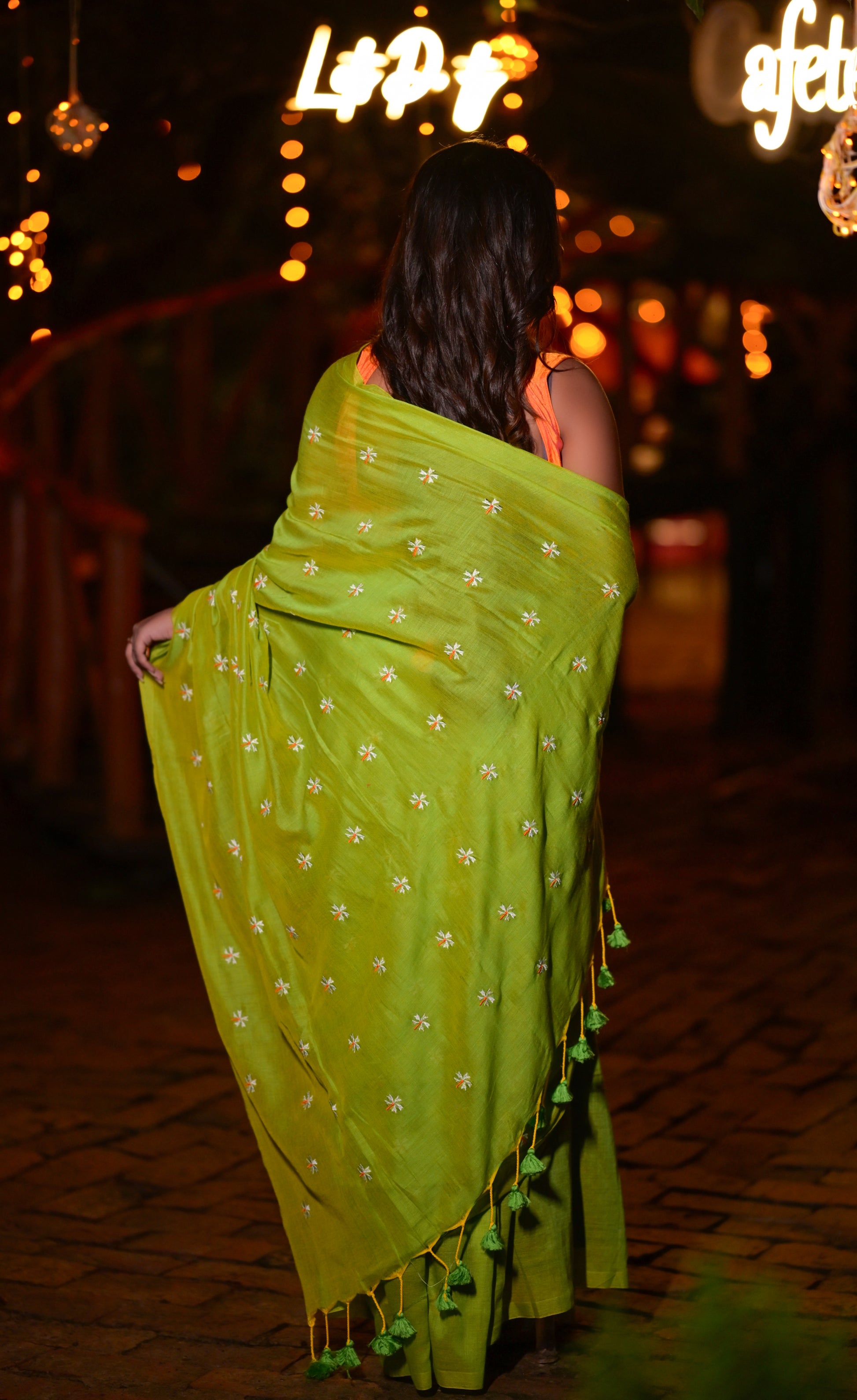 "This saree is festive yet classy. The lime green shade looks even better in person. Definitely worth buying!"