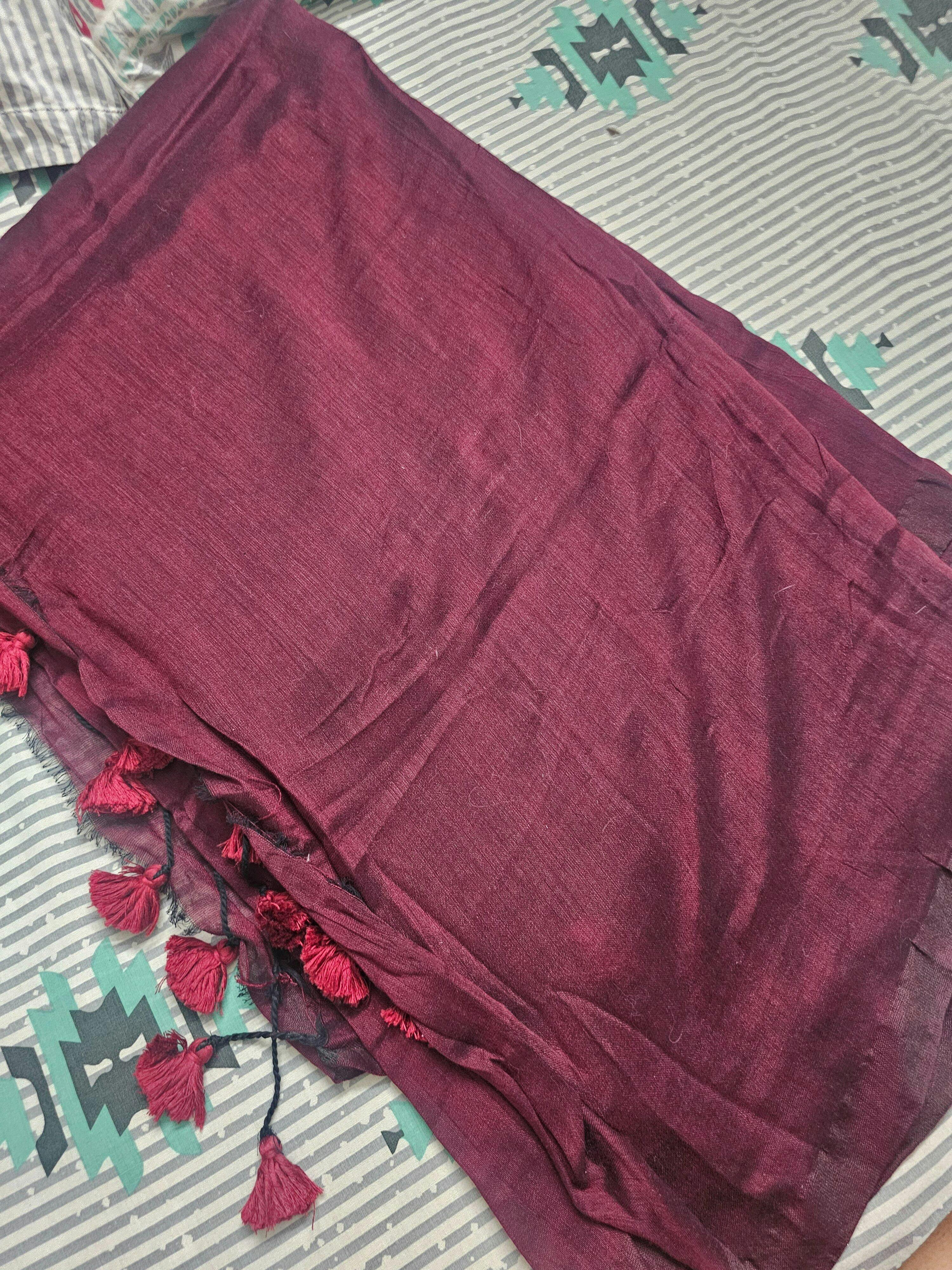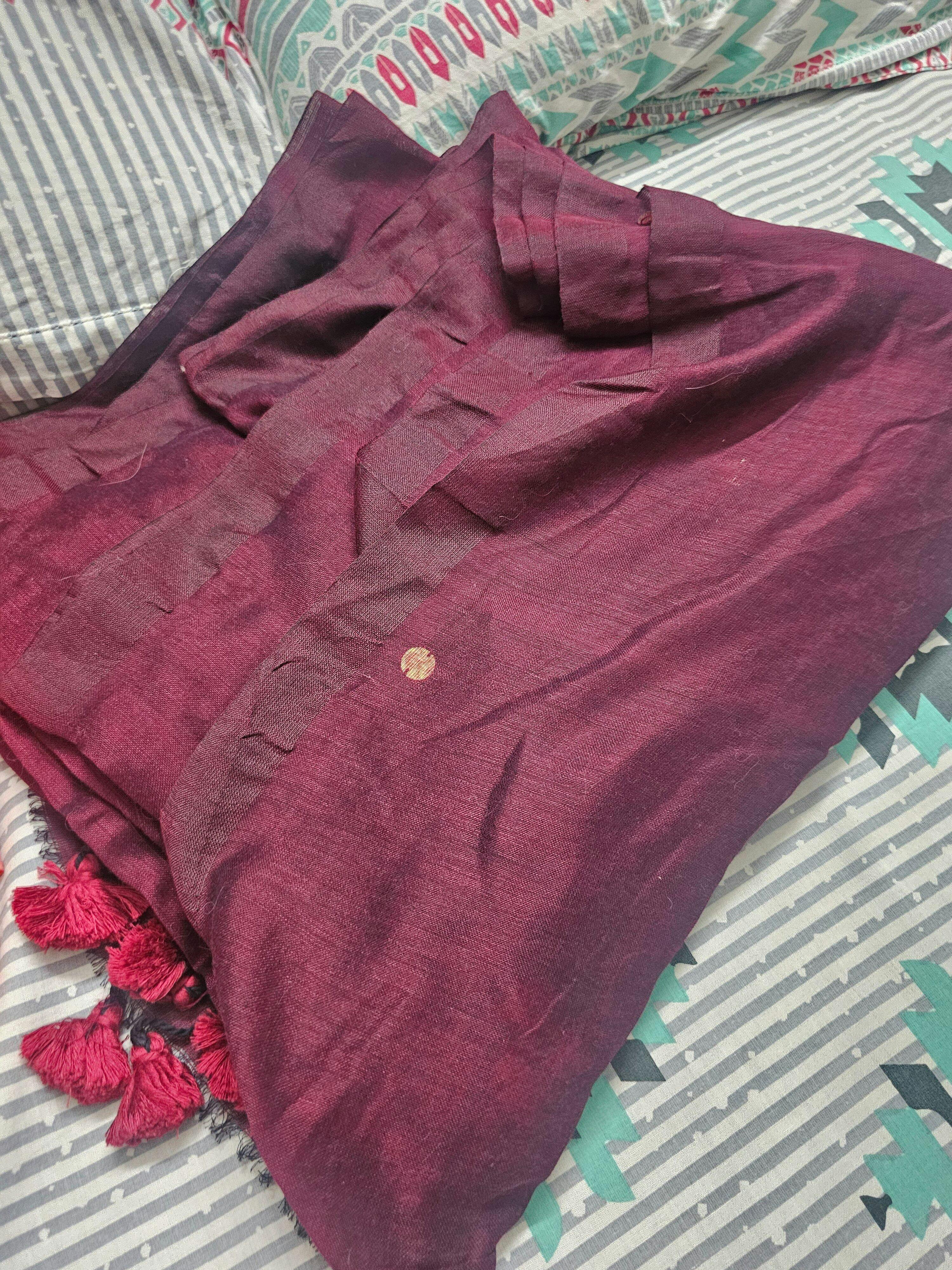Grace your wardrobe with this elegant maroon khadi cotton saree, beautifully handwoven and detailed with subtle golden dots for a festive look. Crafted from pure khadi cotton, this saree is breathable, lightweight, and eco-friendly. It comes with a matching blouse piece, making it a complete choice for parties, festive occasions, office wear, and casual gatherings.